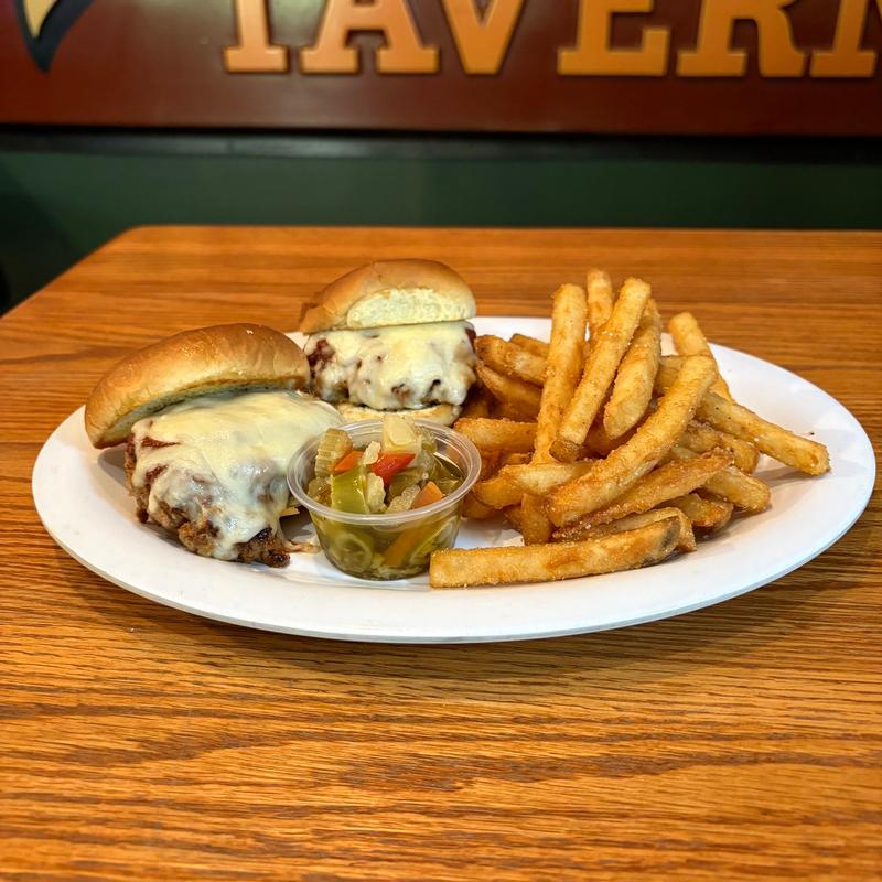 Two Italian Sausage Sliders, Topped with Our Own Home Made Red Sauce and Melted Mozzarella Cheese. Served with a Side of Fries.